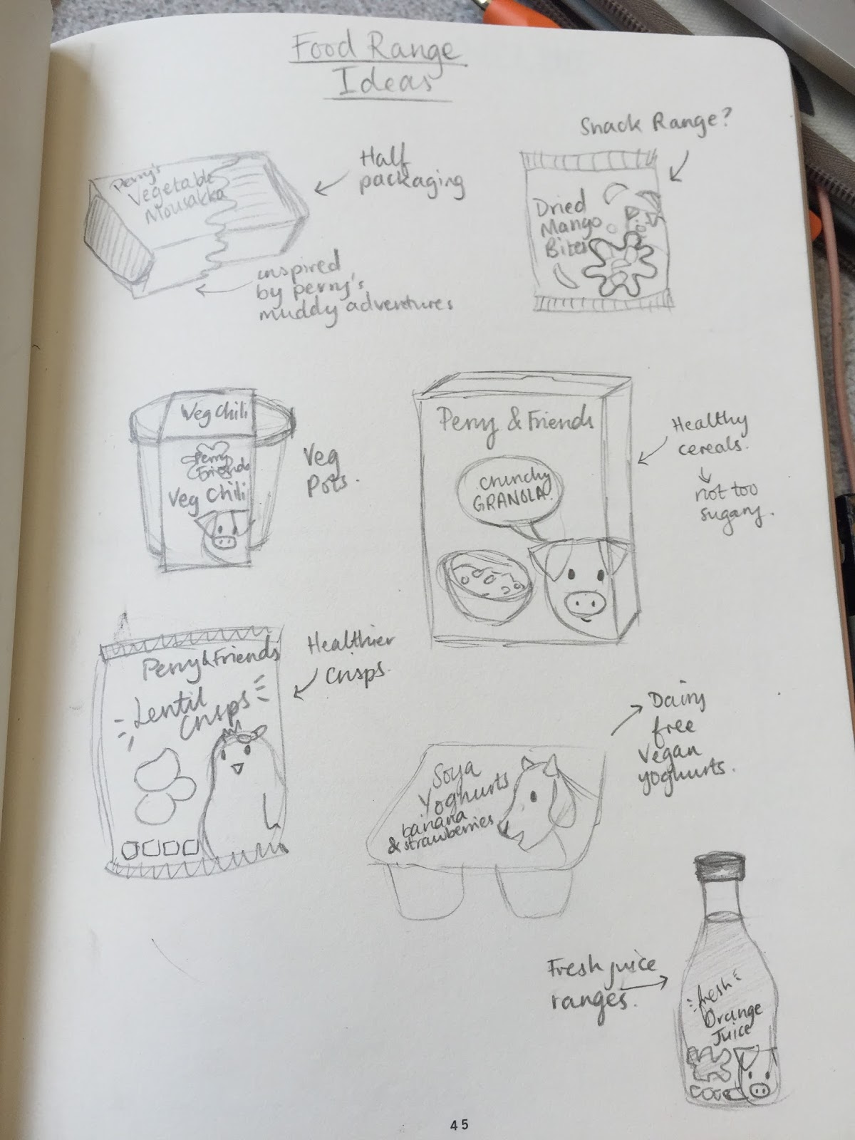 I had lots of different ideas for food ranges so I had to narrow them down a little. I wanted to make something that was healthy and nutritious after reading about children who live on a vegan/vegetarian diet. I think that soya yoghurts might be too niche and juices or smoothies are quite saturated in the market these days. So the best thing I can make in my opinion are the healthy snacks for lunch boxes or the ready meals to help parents effortlessly give their children lots of nourishment within one meal.